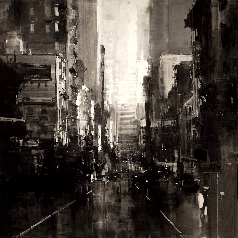 Jeremy Mann est un artiste peintre américain, originaire de San Francisco. C'est sur panneaux de bois qu'il dépeint un univers urbain, humide, sombre et torturé, uniquement éclairé de lumières artificielles telles que les enseignes, lampadaires et autres phares de voitures qui envahissent sa ville à la nuit tombée et se réverbèrent sur la chaussée humide. Ce support lui permet de varier les techniques au gré de son inspiration.